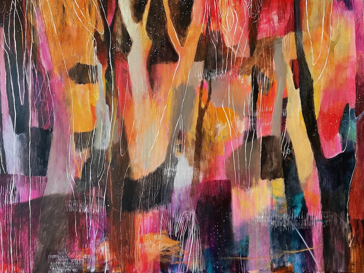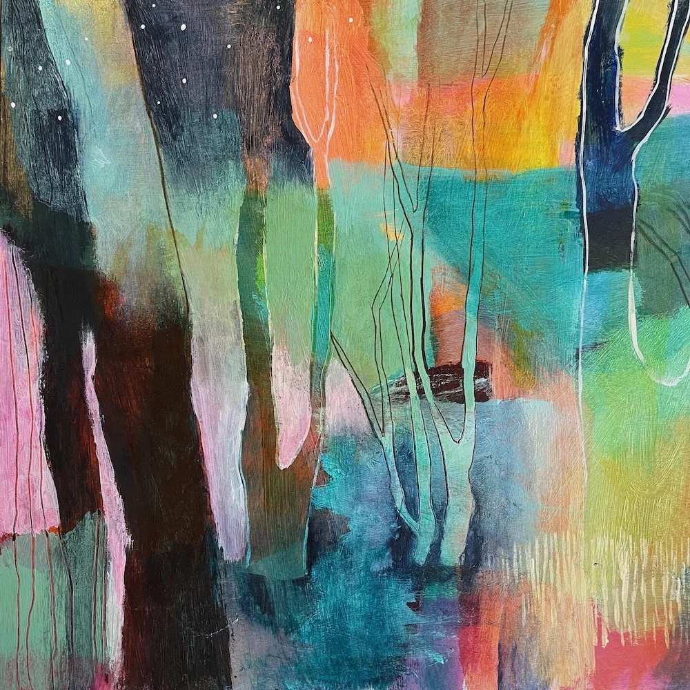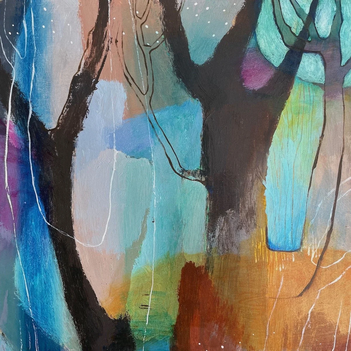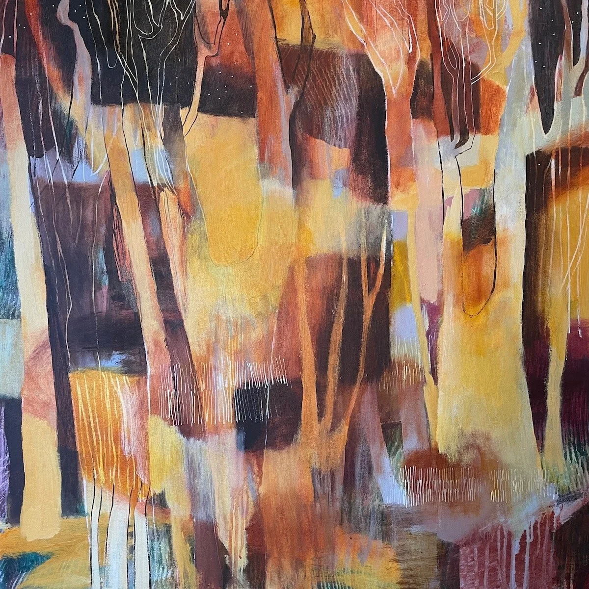 Trees in the Dog park is a series which has been guided by daily presence. My walks to the local dog park have become a source of infinite inspiration. The shifting light and view through the trees trigger a visual sensation and urge to express.
